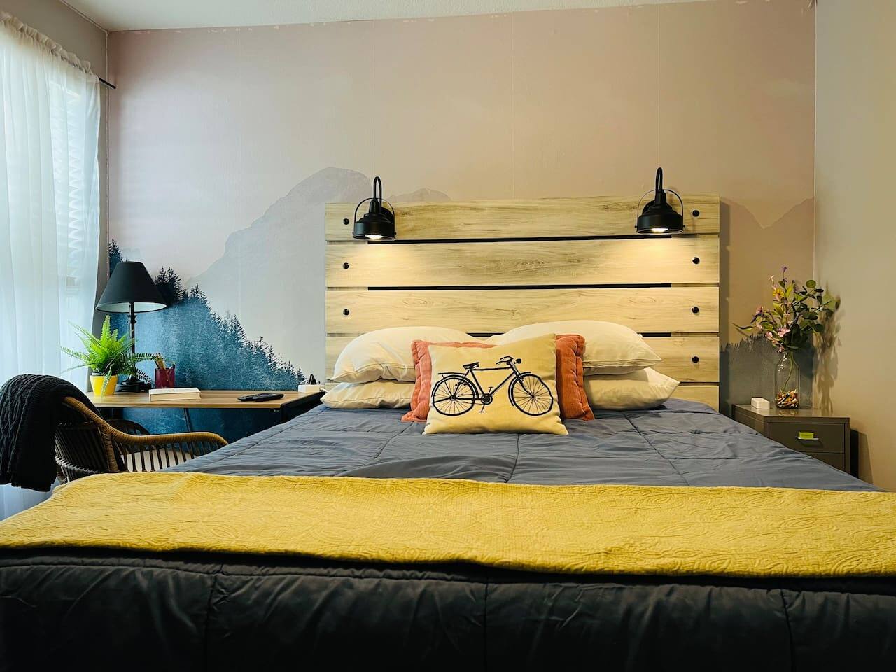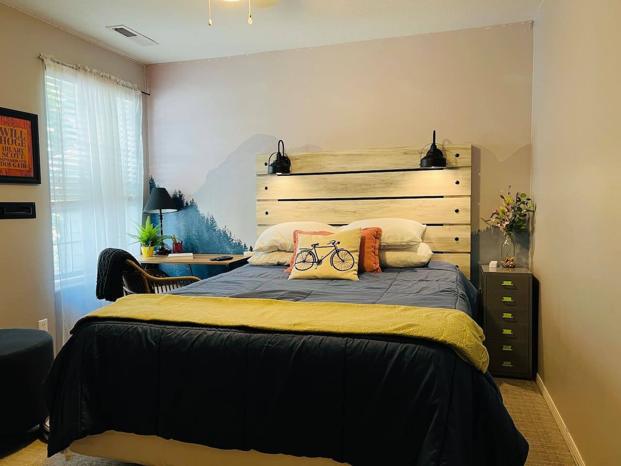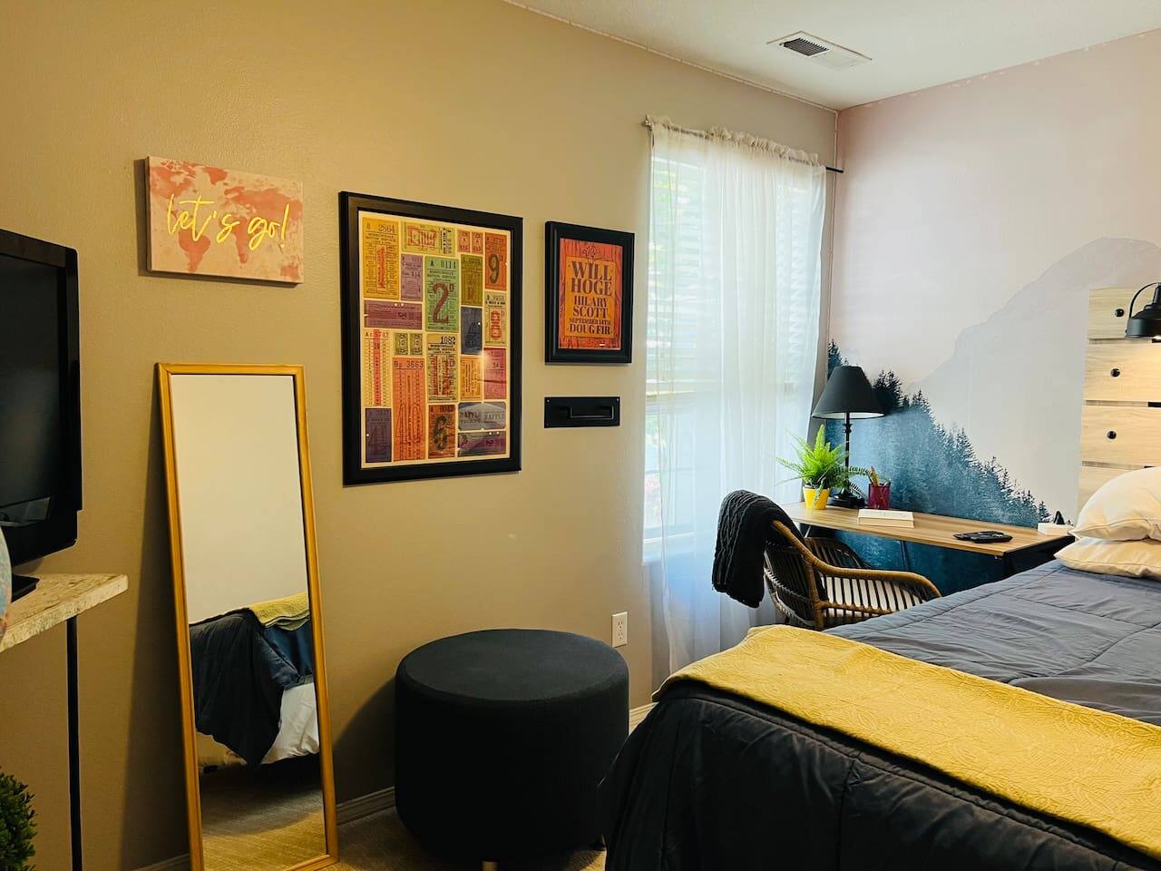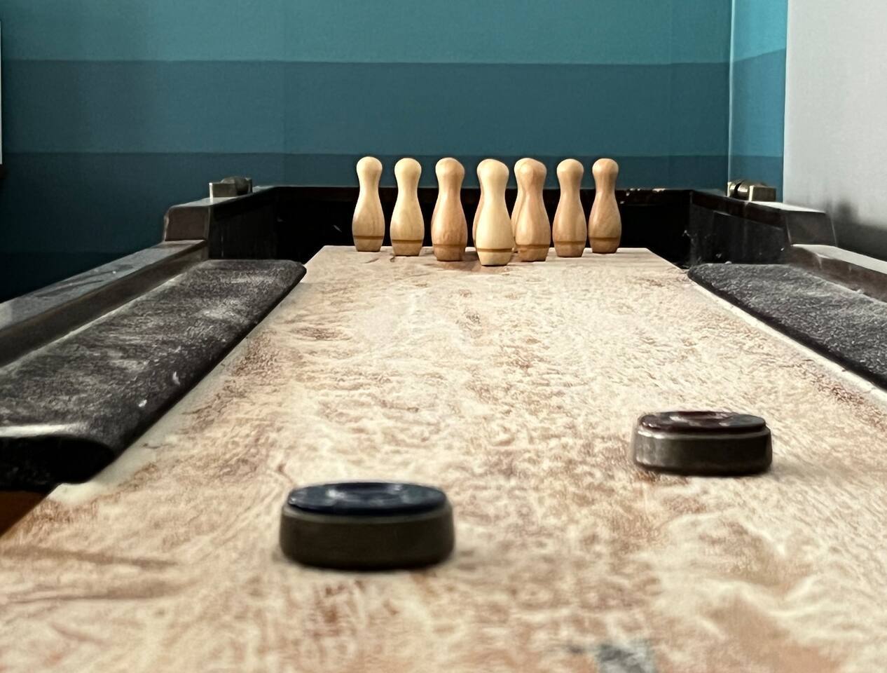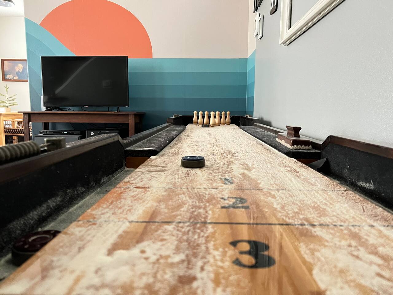Who around here has shuffleboard in the living room?! Perfect for Covid conditions where so many bars and restaurants have restrictions. Plenty of games and things to do in our home. Full kitchen with everything you need to cook at home. Main bedroom upstairs with full attached bath, desk area, tv and small loveseat. Main family spaces downstairs with kitchen, living room, shuffleboard table, and great deck. Queen sleeper sofa can be curtained off for a bit more darkness and privacy, even though it’s in the living room. Much more privacy than average. A second couch for a 5th traveler is available to sleep on as well. There is a full second bathroom upstairs with shower and a half bath/laundry room downstairs. The deck out back is a great spot to sit and chat in the evenings. Trees give a cozy feeling of privacy and that northwest feel. Feel free to park in the driveway. If you have a second car, free, safe and easy to find parking is very close to the house. It is in a quiet residential neighborhood. This is our home when we are not away traveling, so you will see that it has everything you need to live comfortably as well as traces of our family personality. We have had guests for so many years and we love sharing our home with travelers who appreciate our Portland vibe and roots.