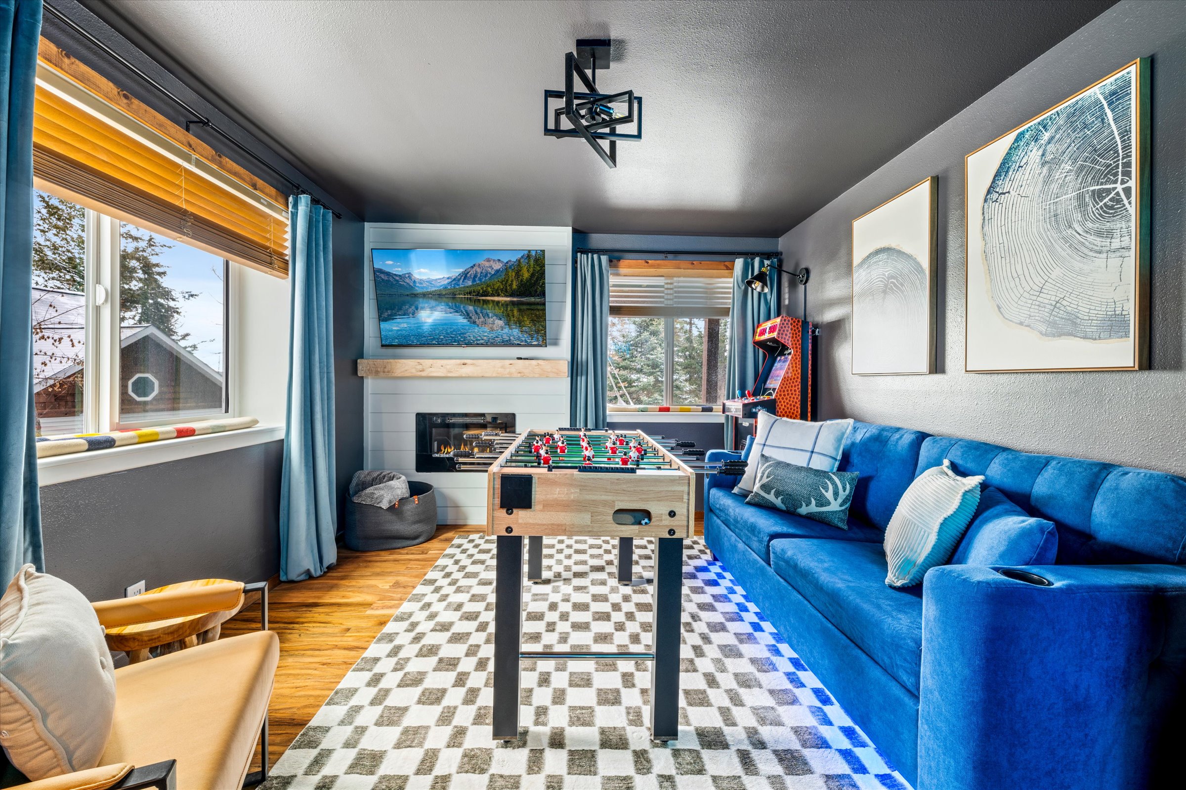 Dive into the ultimate summer adventure at your breathtaking Lakeside MT getaway! This isn’t just a vacation—it’s a chance to create lifelong memories with family and friends. Wake up to stunning views of the shimmering Flathead Lake and majestic Glacier National Park, all while being just moments away from thrilling outdoor activities. Here’s why your dream vacation starts here: Space for Everyone: With 4 bedrooms and room for 13 guests, there’s space to relax, especially in the beautiful outdoor spaces. Whether you’re reuniting with family or gathering with friends, everyone will feel right at home. Endless Fun: Get ready for fun-filled days and cozy nights! Challenge loved ones to arcade games or yard games, roast marshmallows at the fire pit, and grill up delicious meals al fresco. The hot tub awaits for those magical evenings under the stars! The sauna warms up the chilly mornings and evenings and relaxes sore muscles after exciting days of play. Adventure Around Every Corner: You’ll be just a stone’s throw away from Flathead Lake’s sparkling waters for swimming, boating and fishing. Explore the breathtaking trails of Glacier National Park, send it at Legacy mountain bike park, or carve up the slopes at Blacktail Ski Area—there’s something for everyone! A Backyard Oasis: We’re giving our backyard a fantastic makeover, making it the perfect place to soak in the sun, dip in the tub, warm in the sauna, and share magical moments. It’ll be a space where memories are made and laughter fills the air. This isn’t just a stay; it’s the perfect year round escape waiting for you to discover. Book now and start dreaming about your once-in-a-lifetime lakeside adventure! There are so many great things to go do and explore: Bow season opens Sept 1 Rifle season Mid October-Thanksgiving Boating Flathead lake *recommend* Huckleberries ~24 miles to Glacier international airport ~51 miles to Glacier national park ~14 miles to skiing at Blacktail ~4 miles to Mountain Biking at Legacy ~1.2 miles to Volunteer Park for picnics, sun and splashing around >.8 miles to Tamarack Brewing to experience their seasonal brews and a favorite spot for locals. At home- •Firepit •Hot Tub •Barel Sauna •Outdoor games •Indoor games •Disc Golf •Paddle Boards •Flat top Grill •Charcoal Grill •Fully stocked kitchen •4 TVs •2 electric fireplaces •2 king beds •1 queen bed •2 full beds •1 twin bed •1 queen pull out bed •1 Pack and play •Window AC unit for summer •Floor heat in basement for winter ** PLEASE NOTE THAT BOOKING GUEST MUST BE 25 YEARS OF AGE **